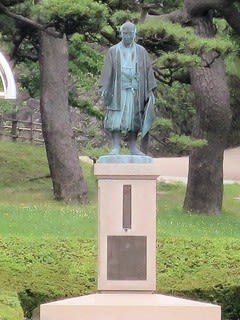 上の銅像の瑞賢は、1672年、この日和山に堀や土壘を