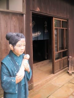 資料館」で、館内では、「おしん」の人形が出迎えて