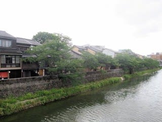 次に、主計町茶屋街の脇の浅野川大橋を渡り、向こう岸の
