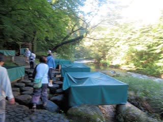 渓谷沿いには、上の写真の「鶴仙渓川床」が営業して