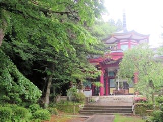 医王寺は、下の写真の様に、温泉街を見下ろす高台に建って